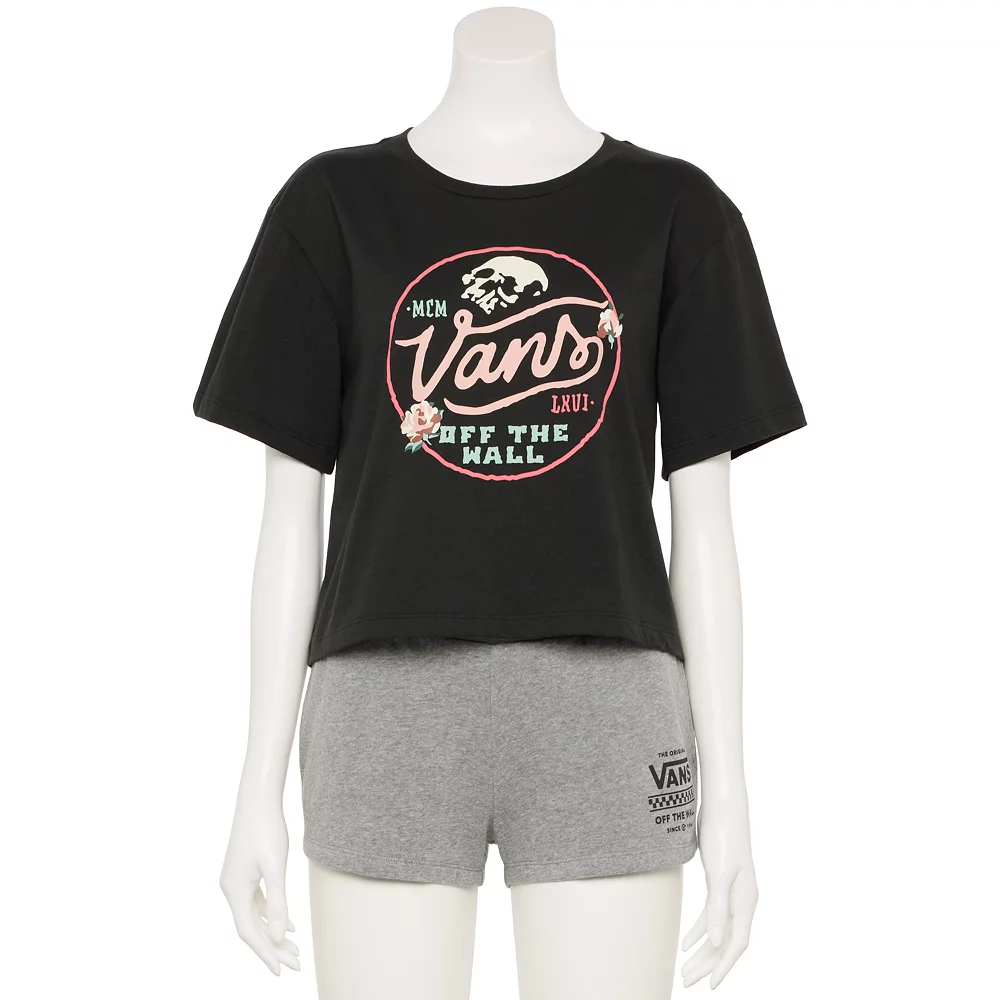 Juniors’ Vans Cropped “Off The Wall” Skull Logo Graphic Tee