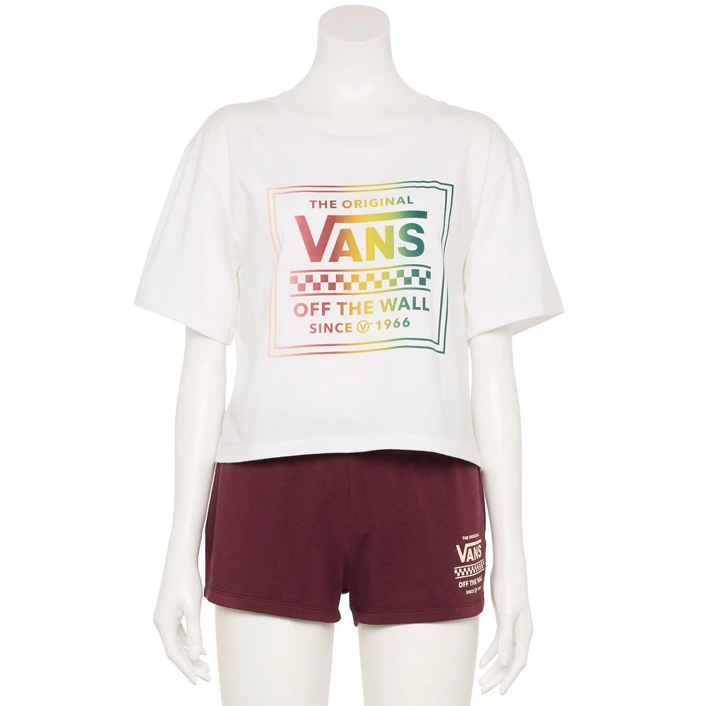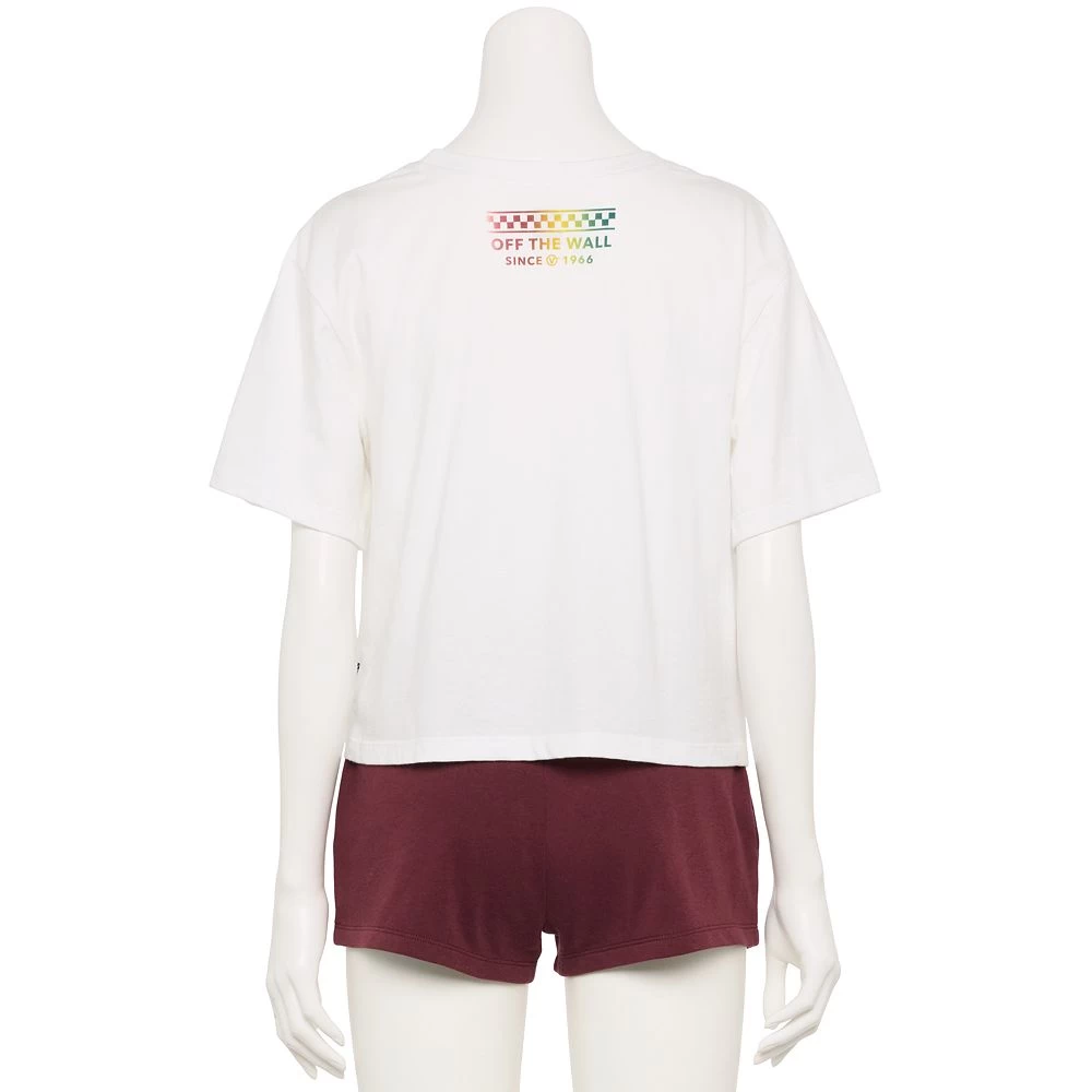 Juniors’ Vans Cropped Rainbow “Off The Wall” Logo Graphic Tee