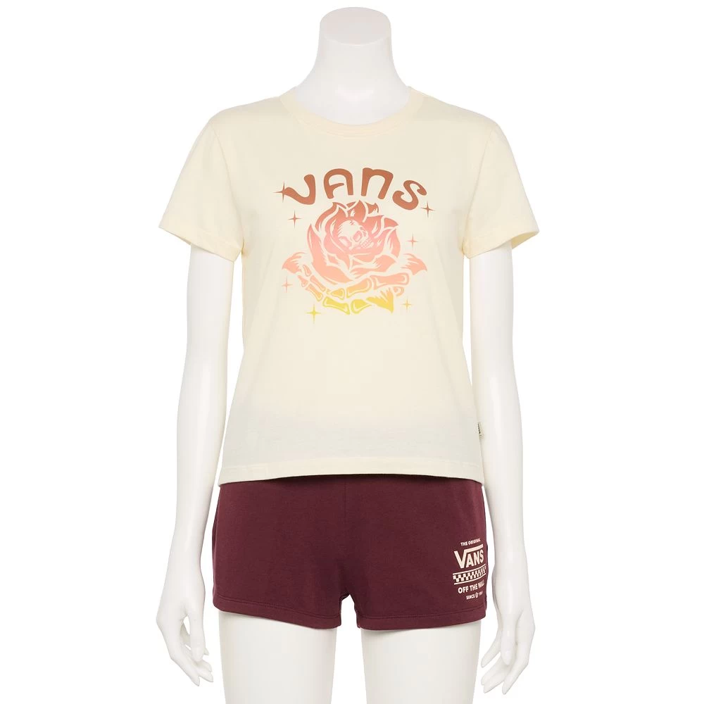 Juniors’ Vans Rose “Vans” Logo Graphic Tee