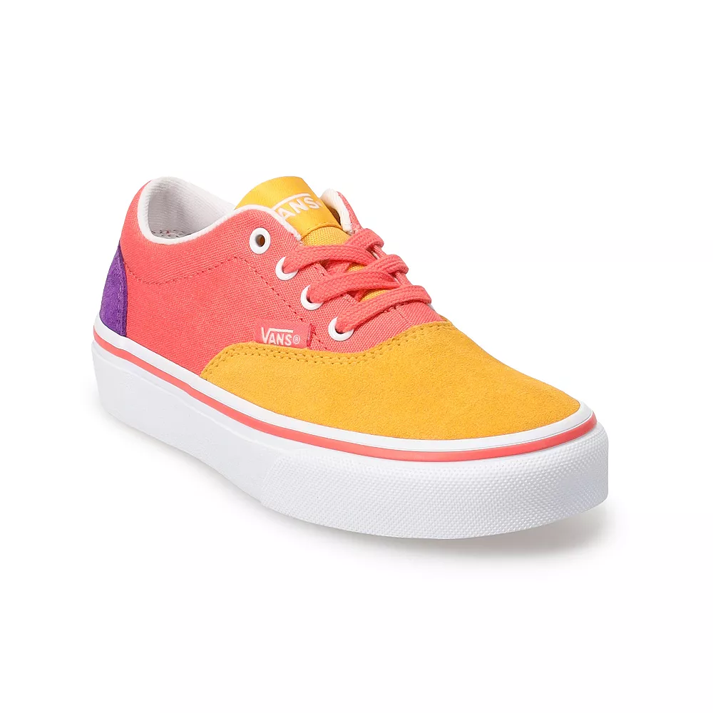They’ll love the colorful style of these Vans Doheny color block kids’ shoes.